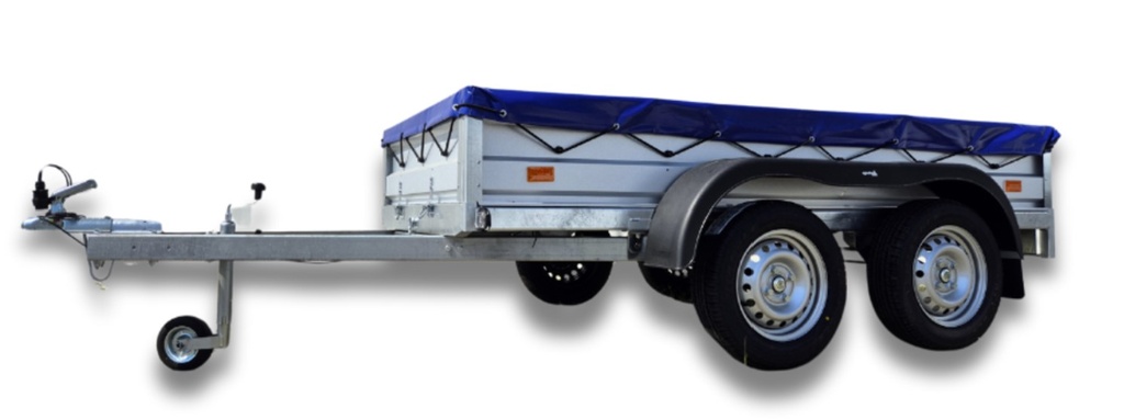Durable blue trailer tarpaulin cover with elastic rope fastening, designed for TORBARINA T075M1 trailer.